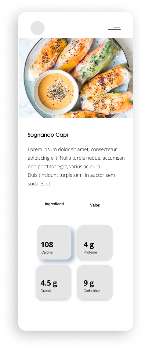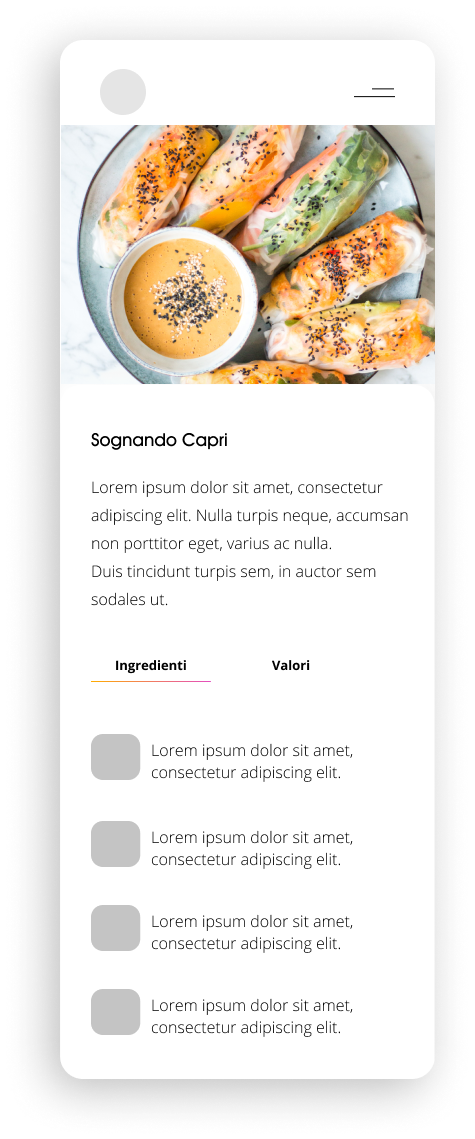 The Fresh Roll is almost an unknown dish, for this reason the decision was to give much relevance to the product and focus the design on it. Quality and taste of the ingredients are the core of the communication and they are considered interesting by the potential users, so I decided to give them a great space in the website.